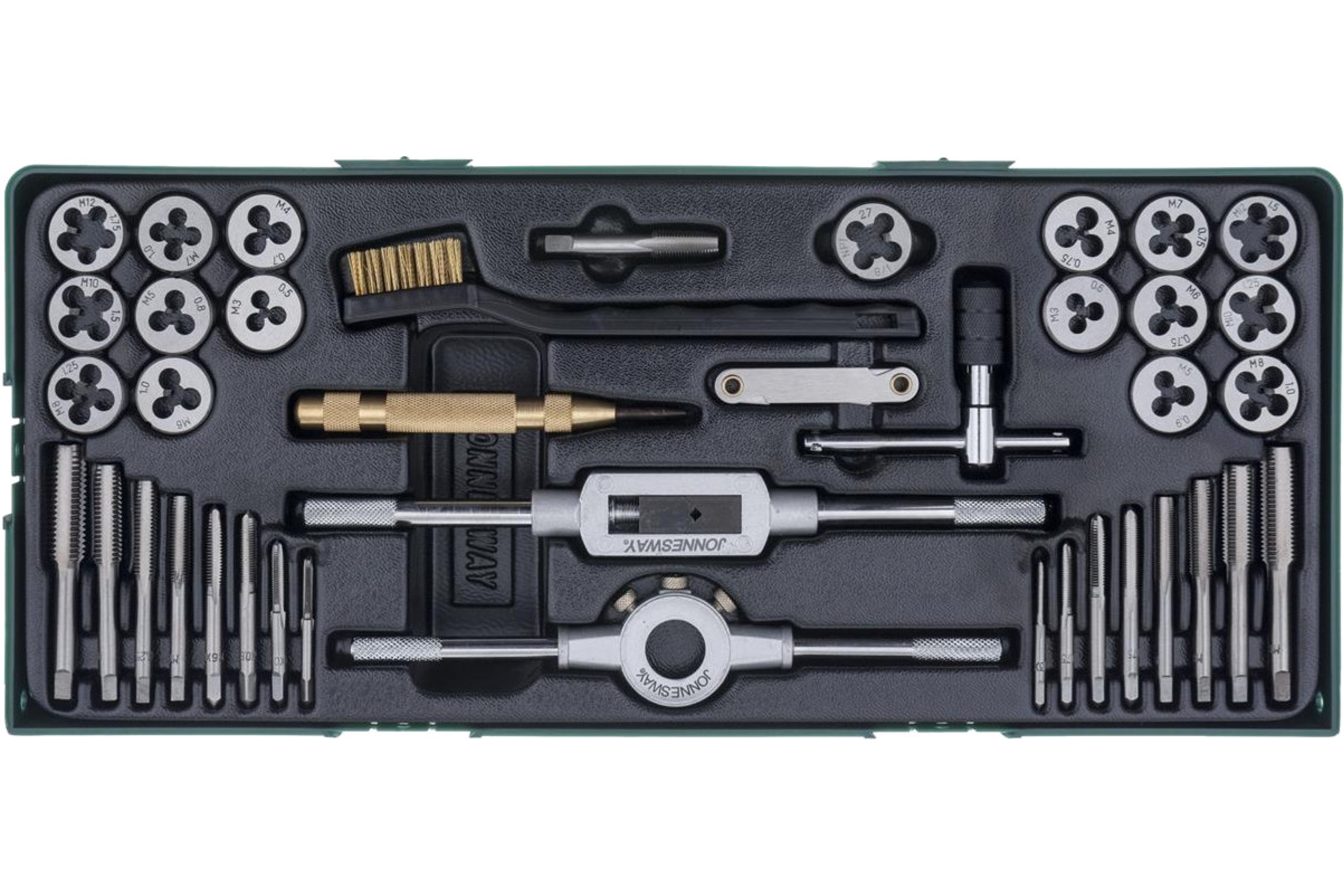 - 17szt. narzynek: M3x0.5, M3x0.6, M4x0.7, M4x0.75, M5x0.8, M5x0.9, M6x0.75, M6x1, M7x0.75, M7x1, M8x1, M8x1.25, M10x1.25, M10x1.5, M12x1.5, M12x1.75, 1/8 NDT 27